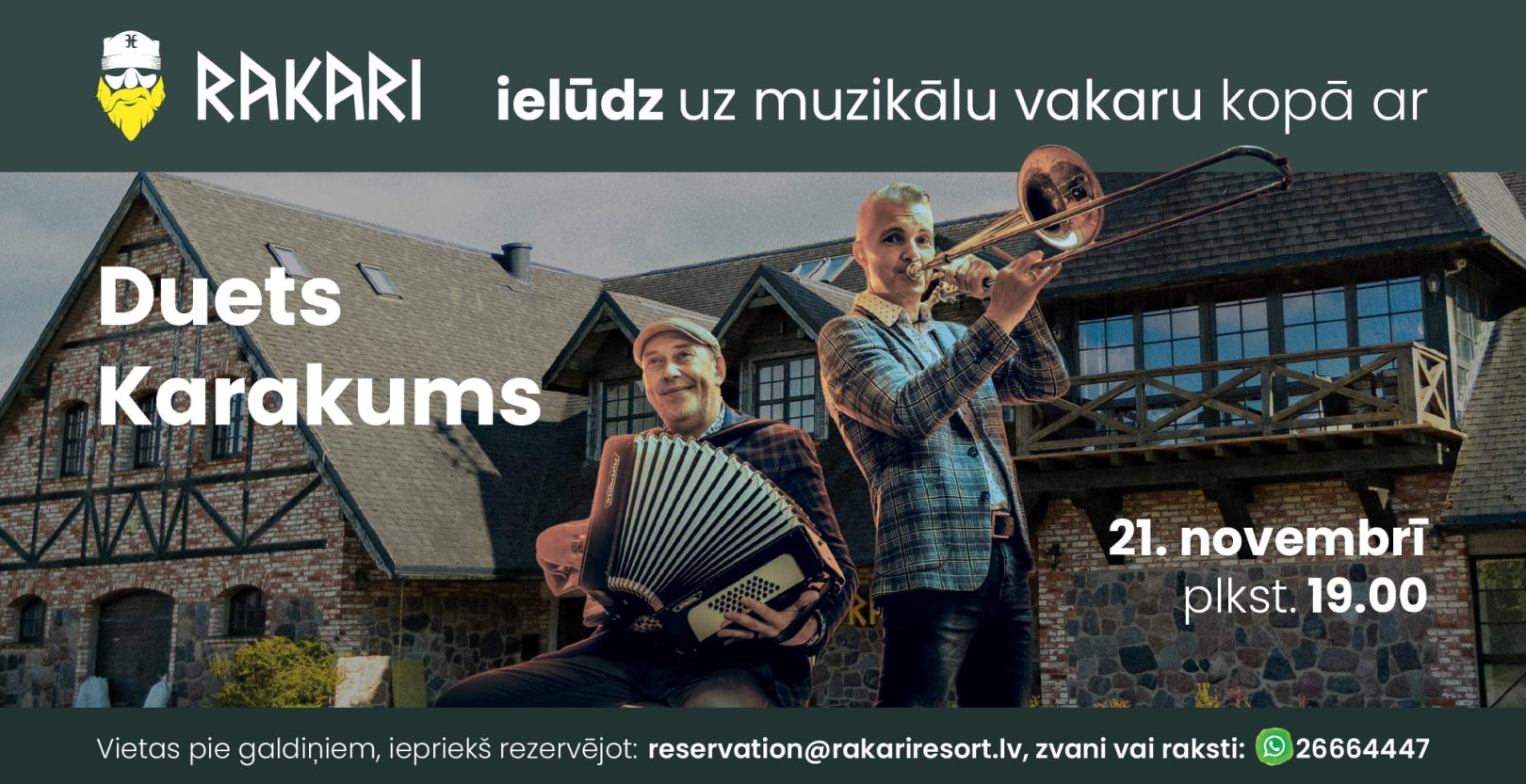 Rezervācijas pieņemam telefoniski un epastā: